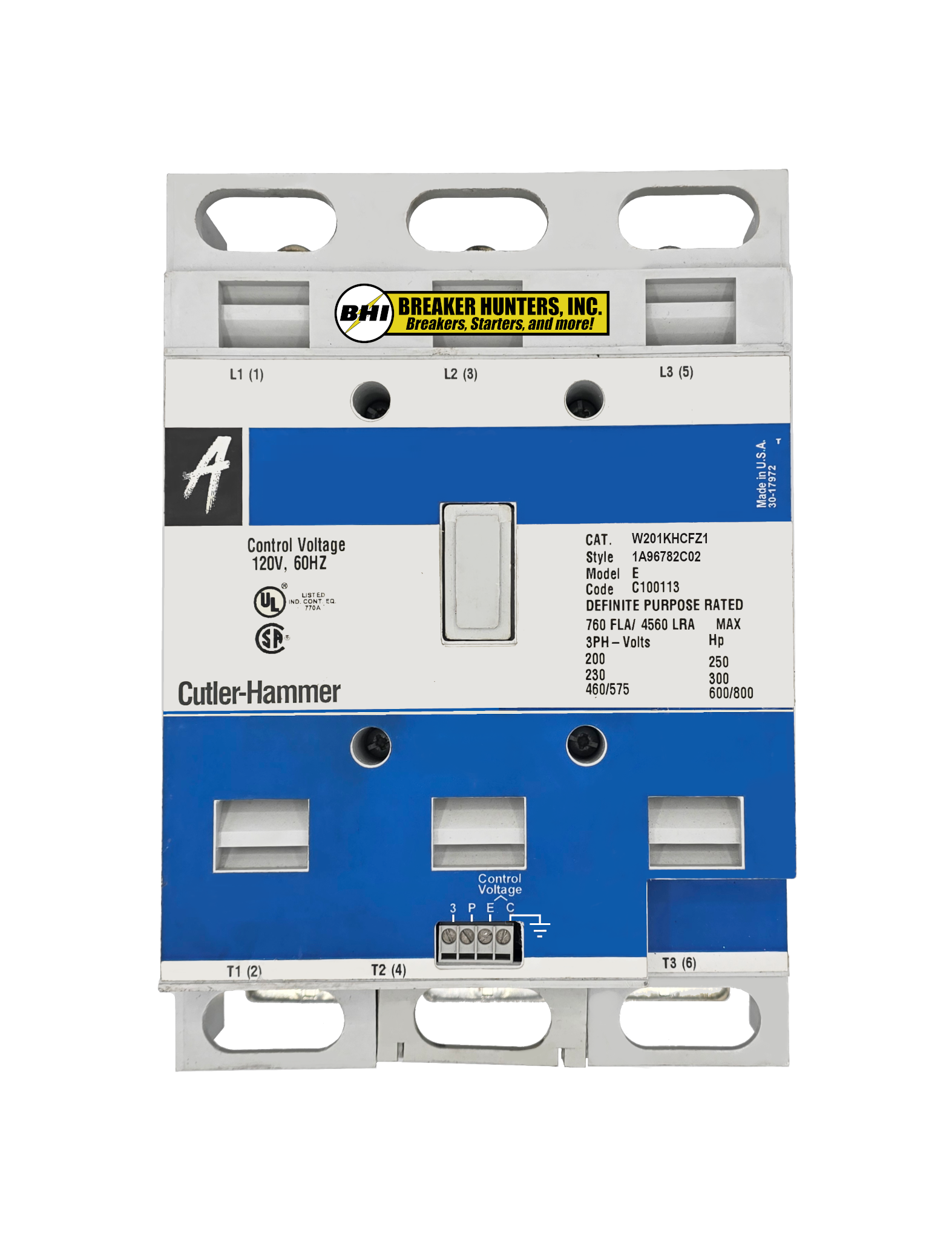 Eaton Contactor, Definite Purpose Rated, 760 FLA/4560 LRA, 3 Poles, Non-Reversing, 120VAC Coil at 60HZ, Full Voltage 600VAC, Open Style No Enclosure, Advantage Series, Max HP Ratings: 250HP @ 200 Motor Volts AC, 300HP @ 230 Motor Volts AC, 600/800HP @ 460/575 Motor Volts AC, Without Terminals Standard.